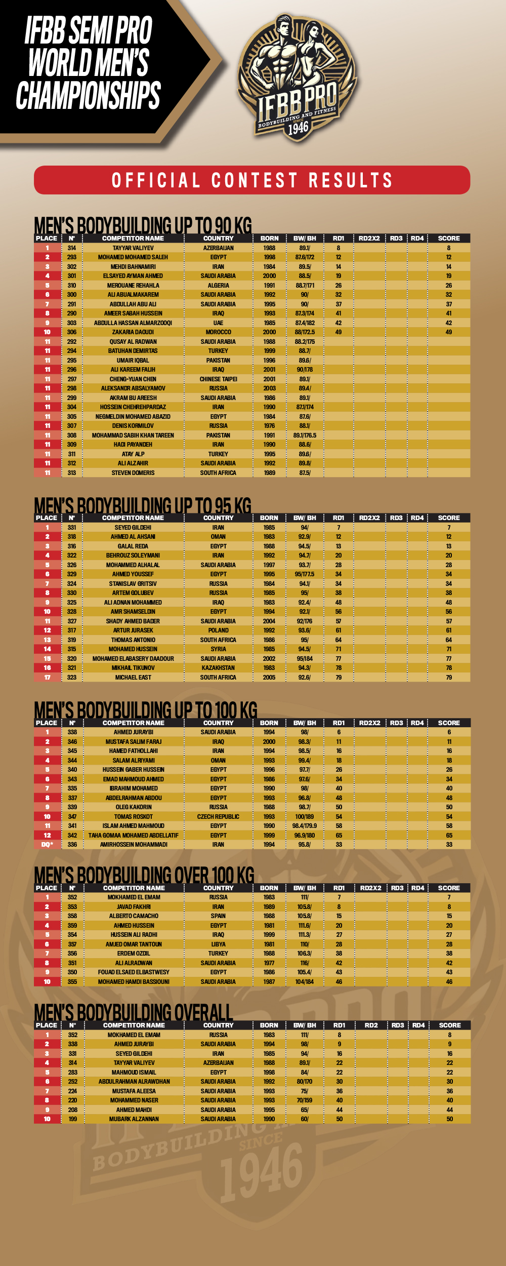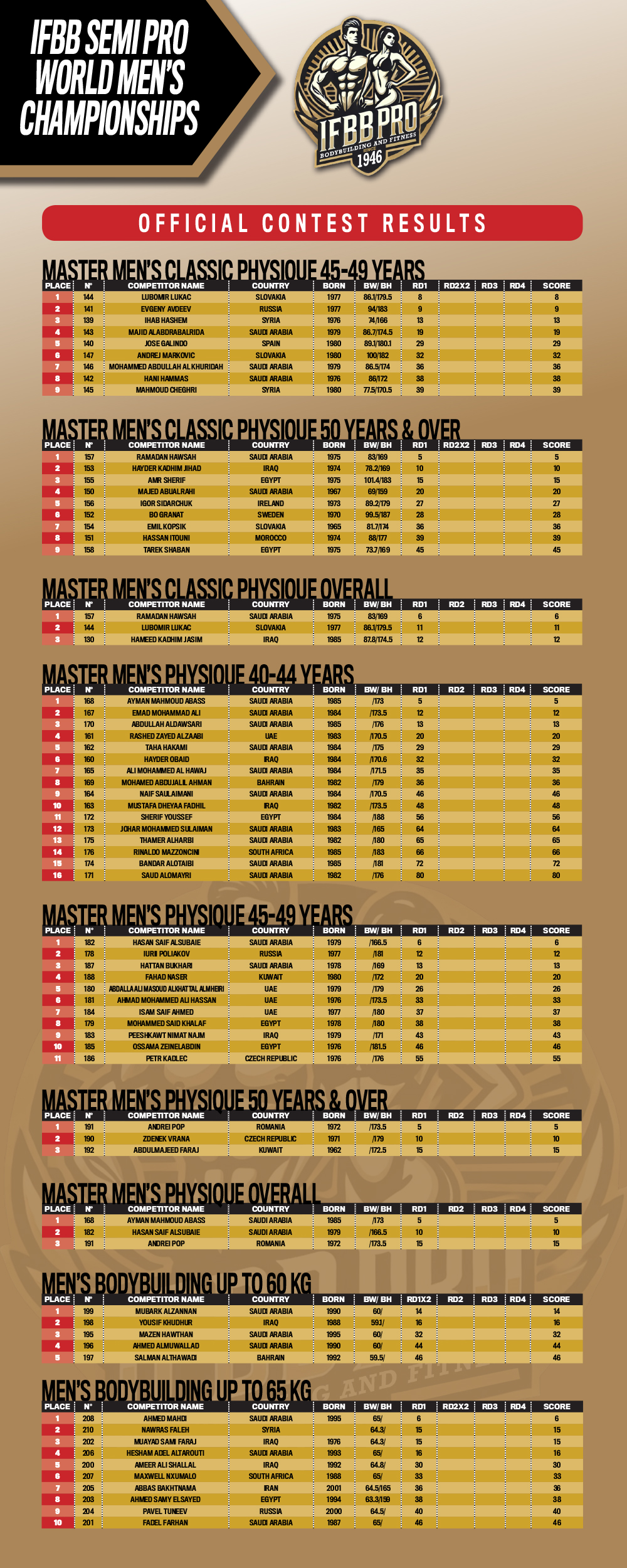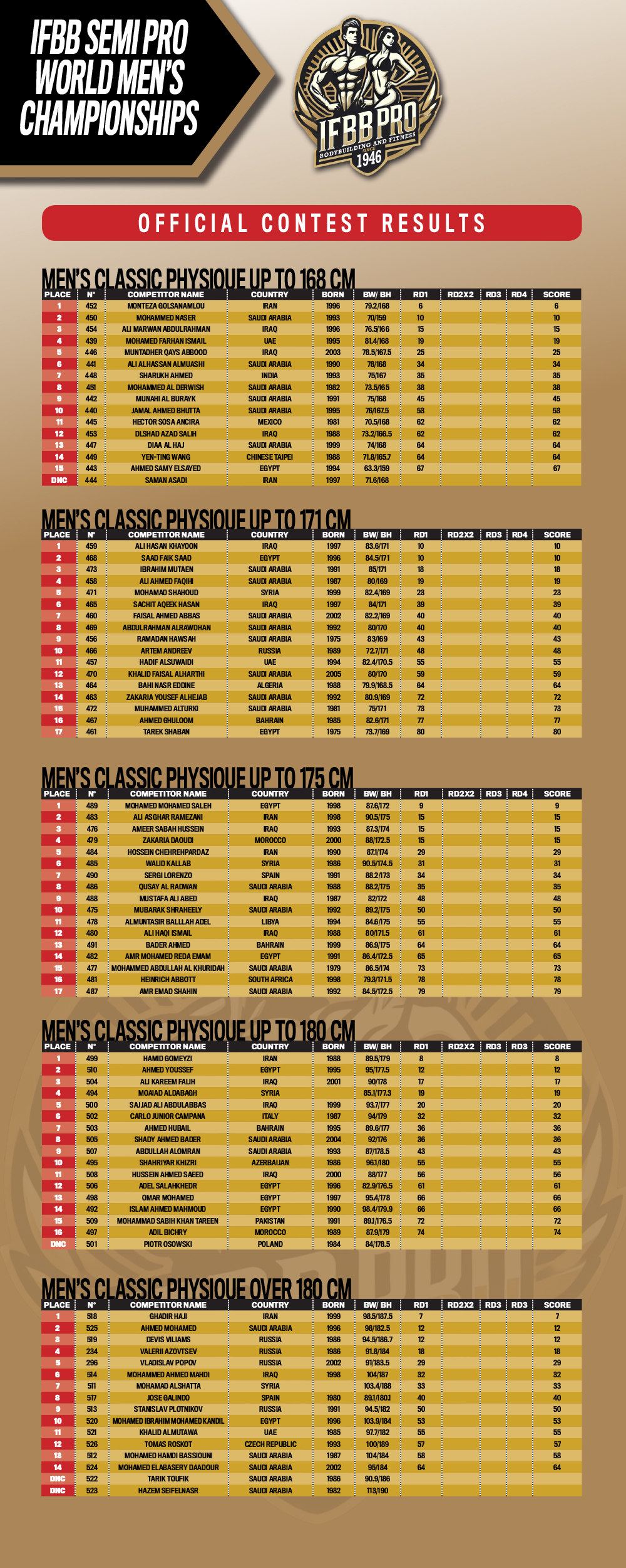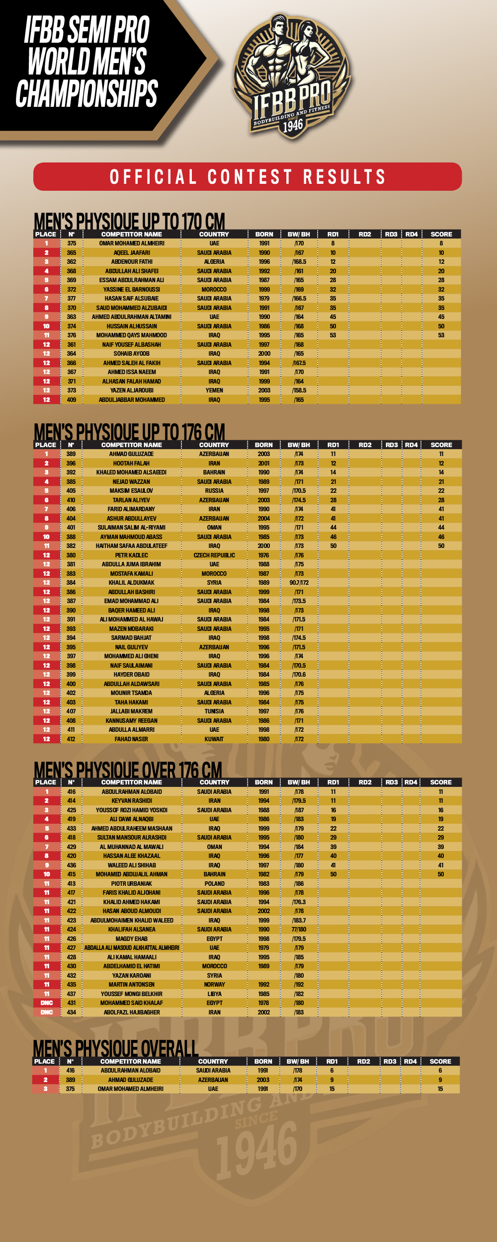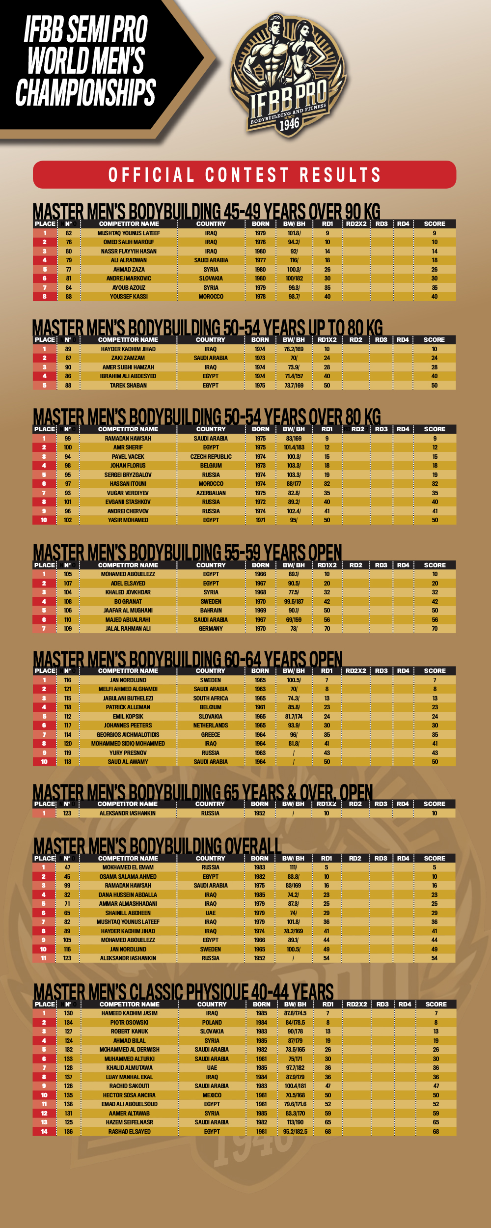 Протоколы: Протоколы: IFBB World Bodybuilding Championships - 2025
