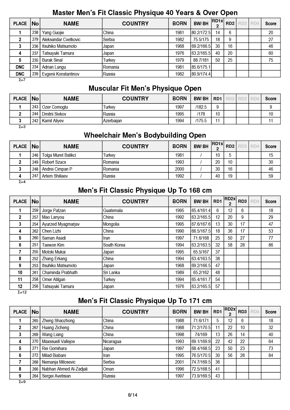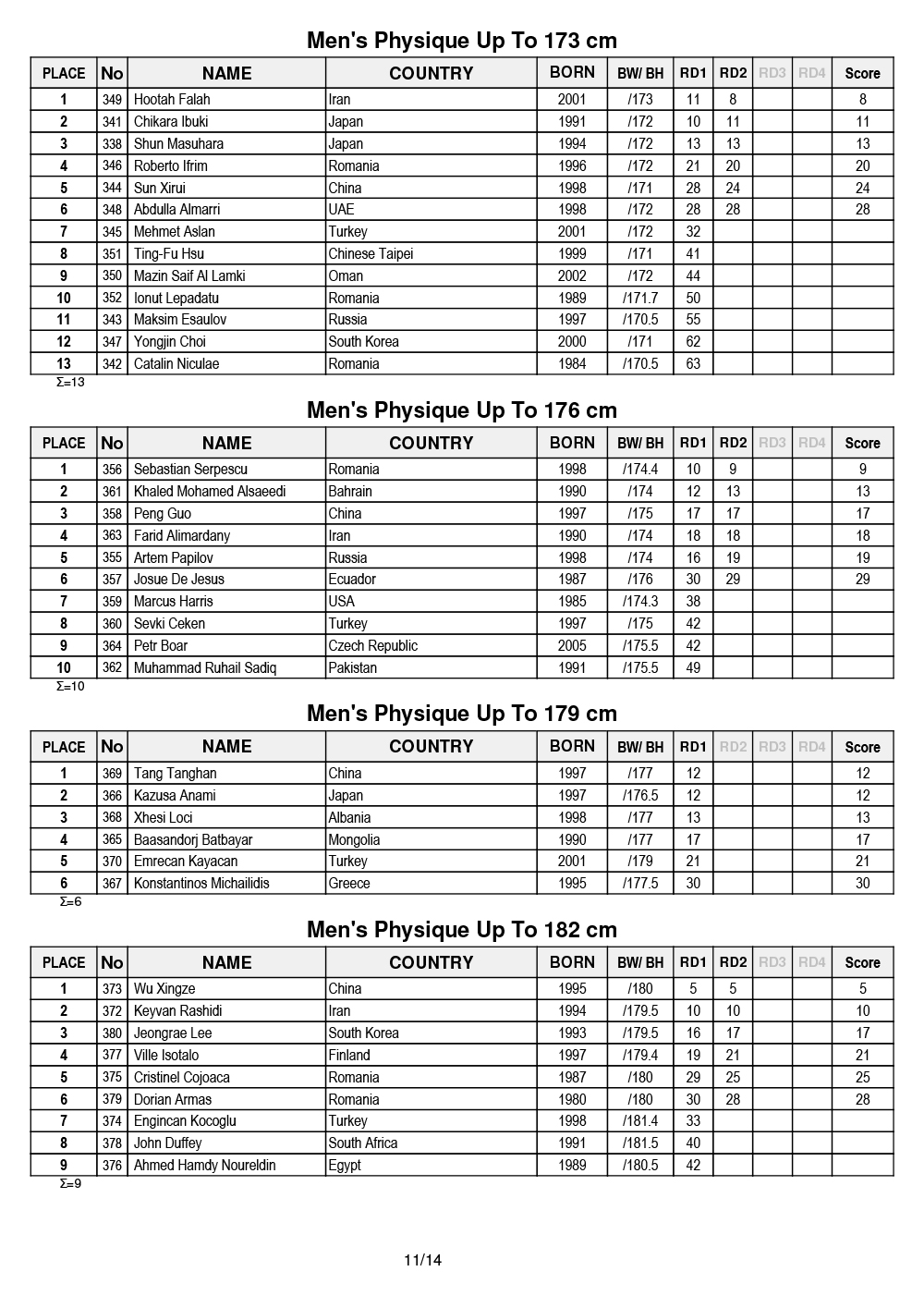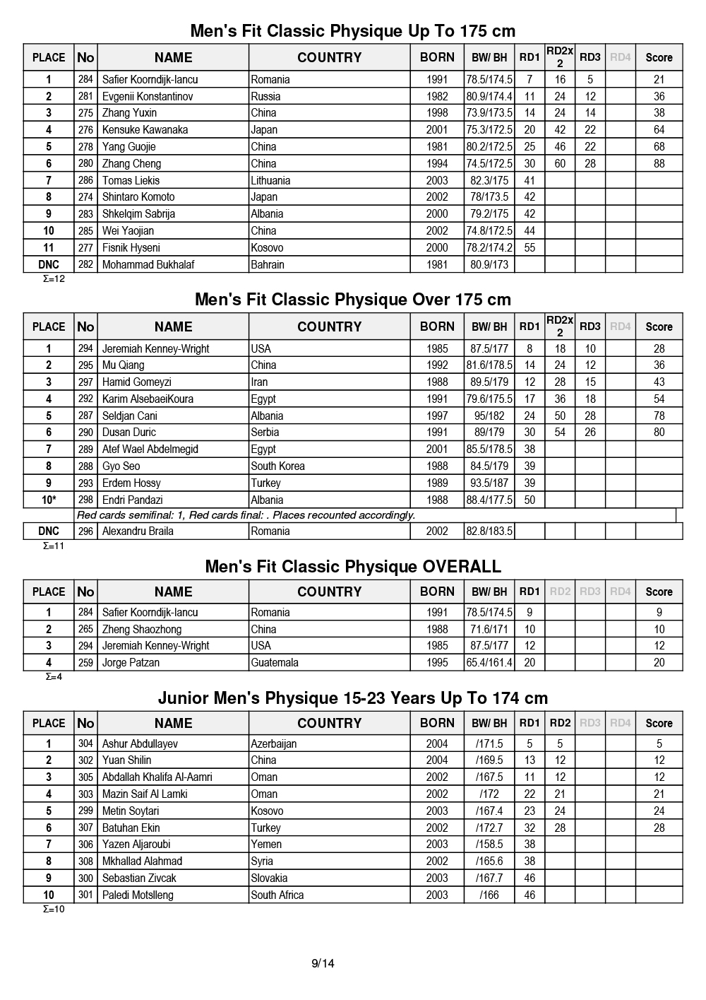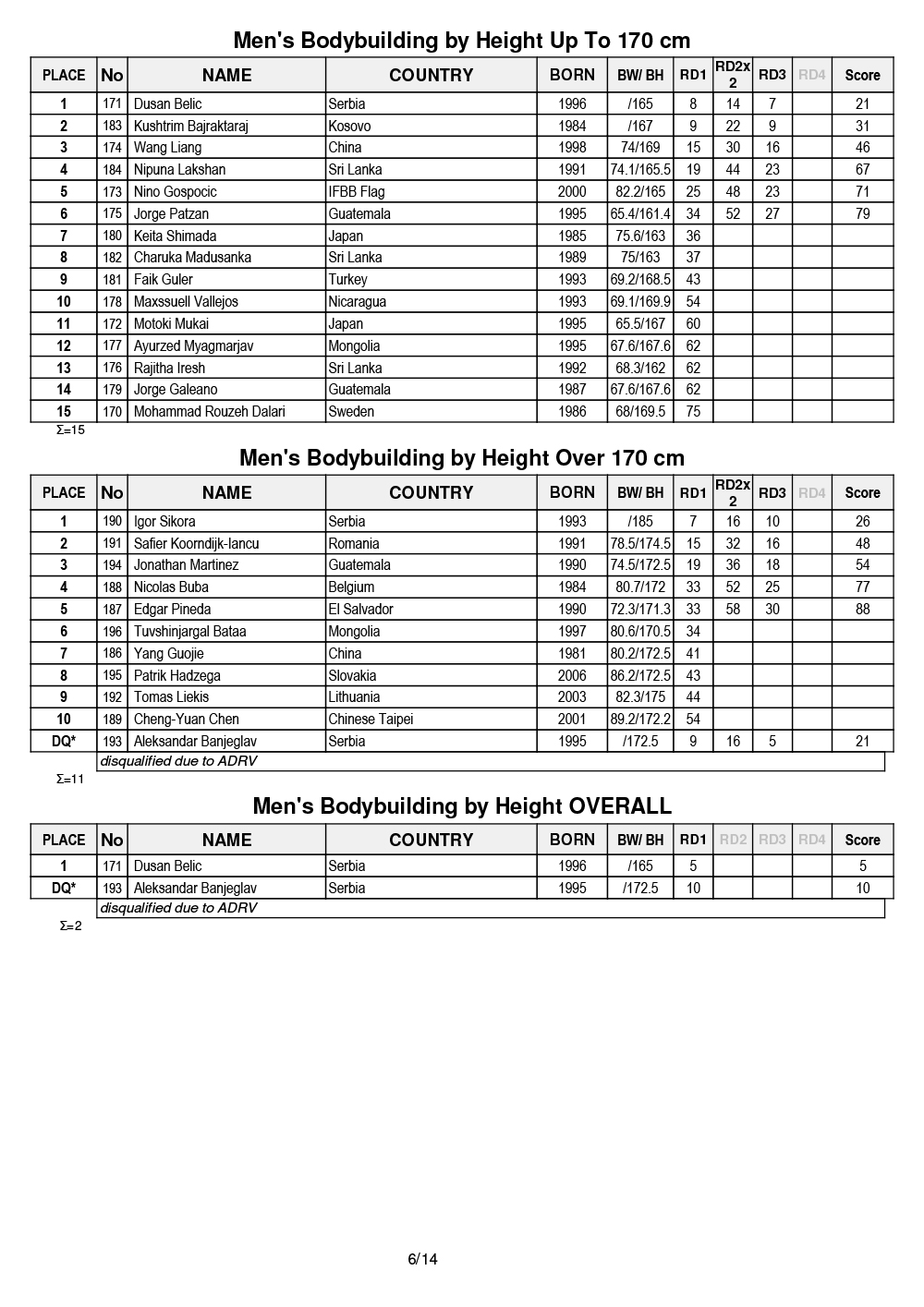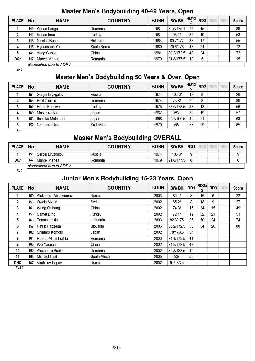 Протоколы: Протоколы: IFBB World Bodybuilding Championships - 2025