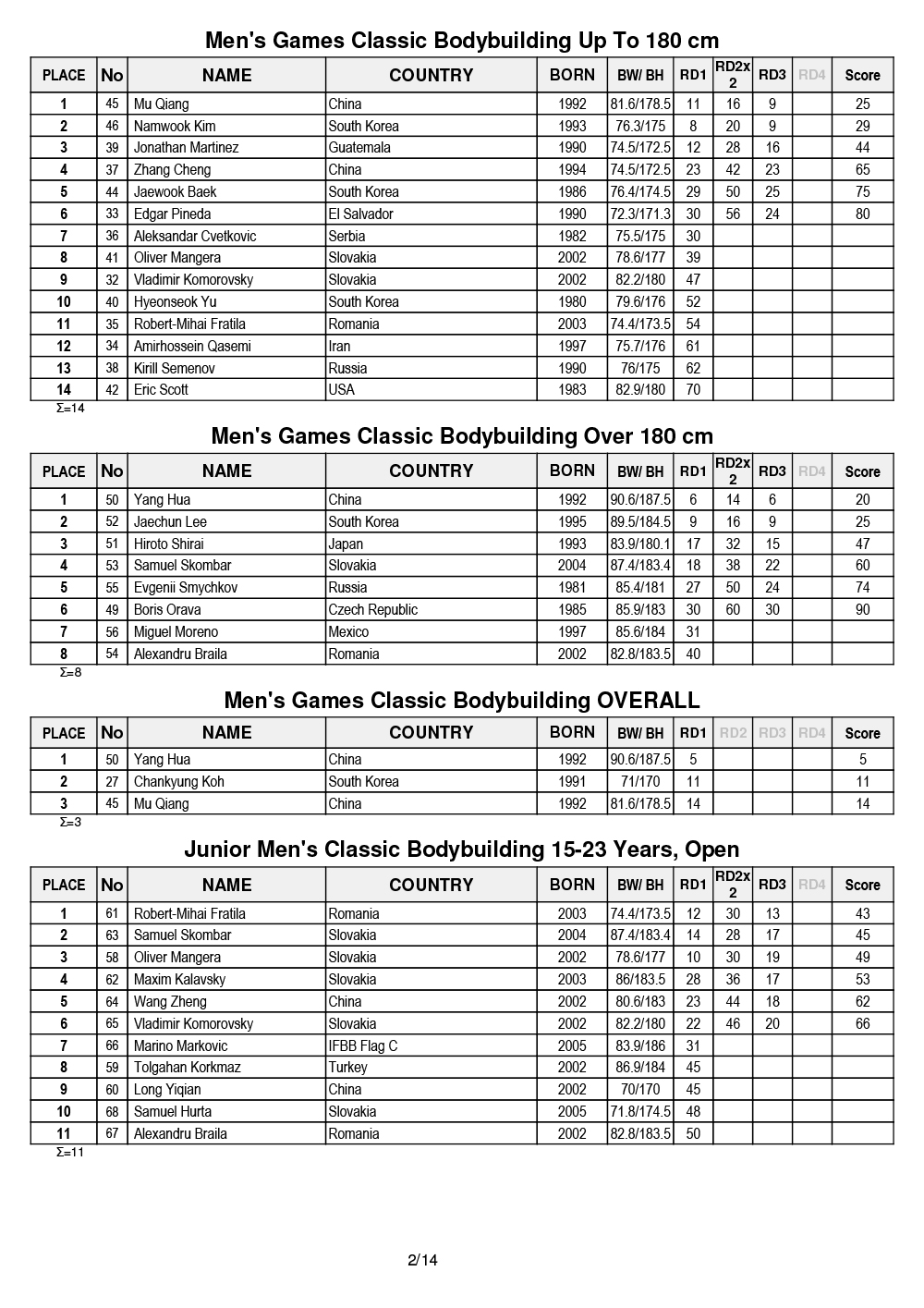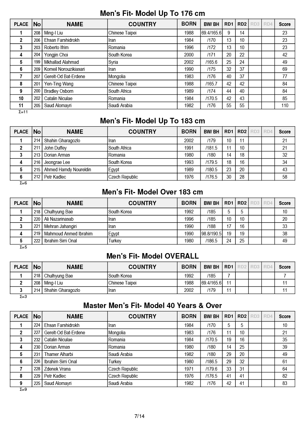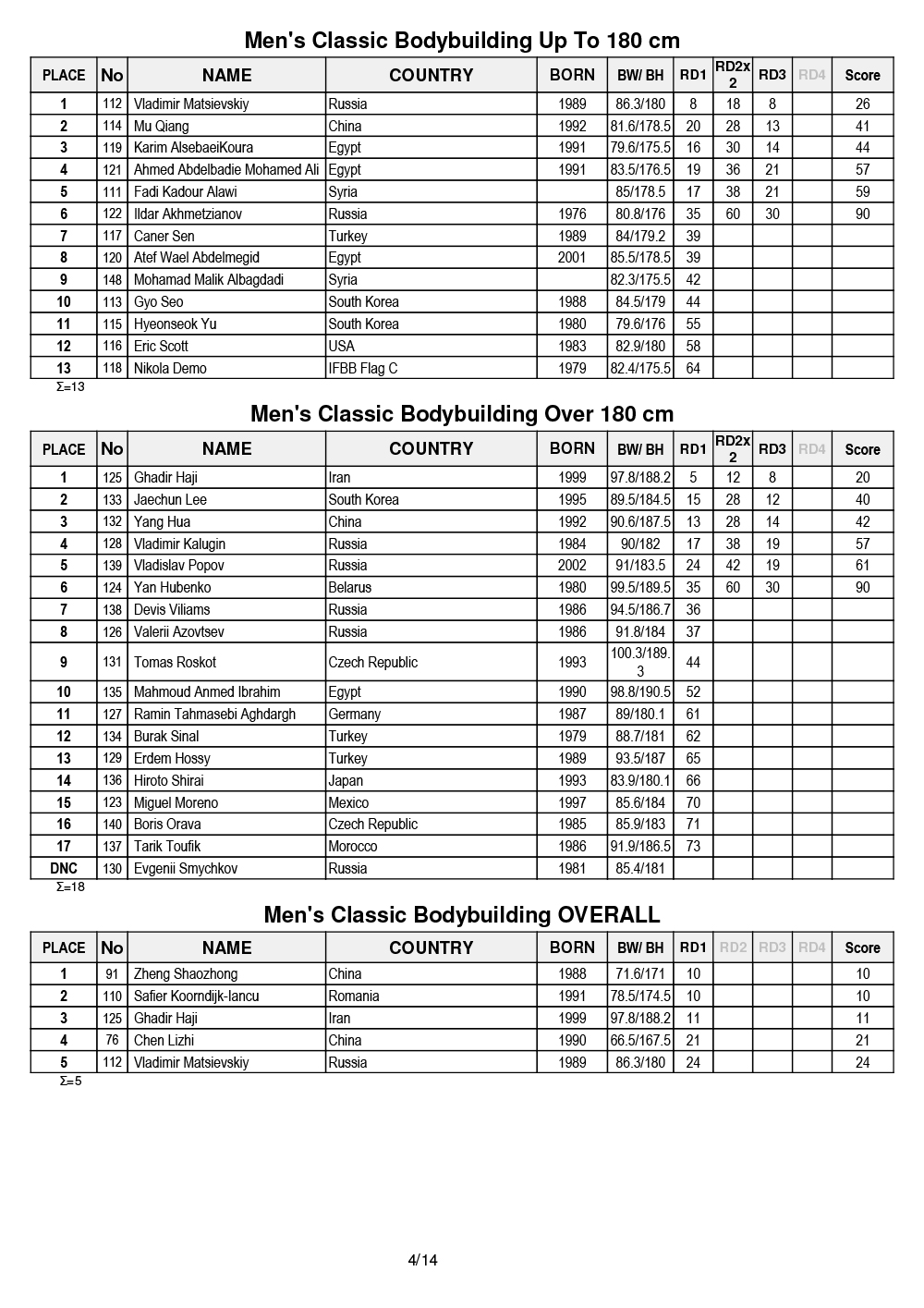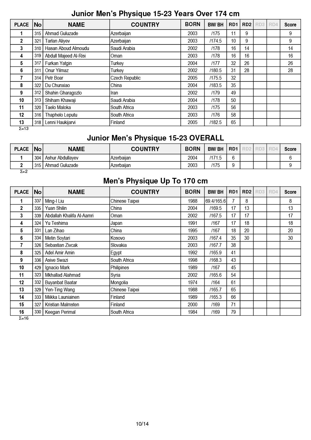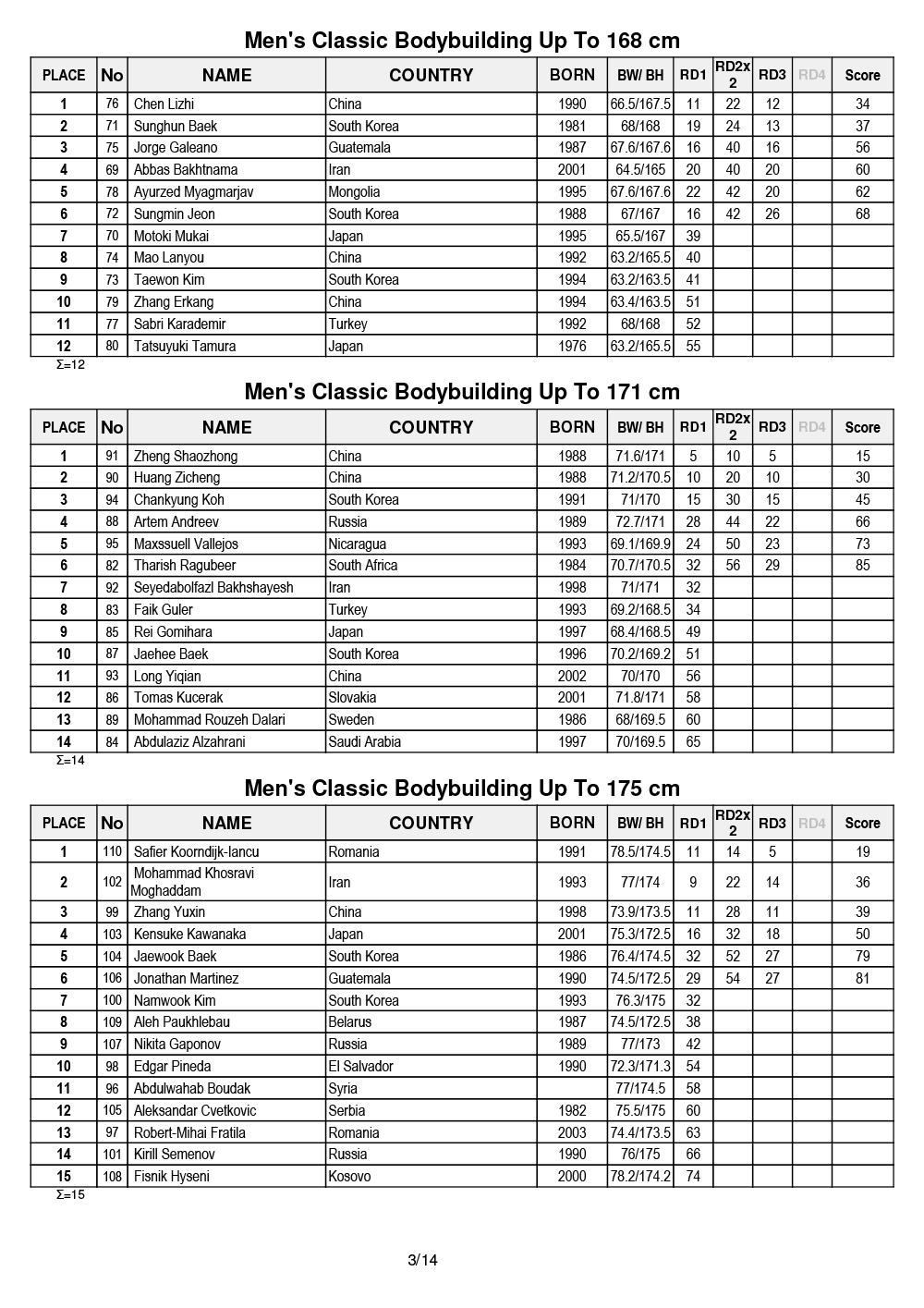Протоколы: Протоколы: IFBB World Bodybuilding Championships - 2025